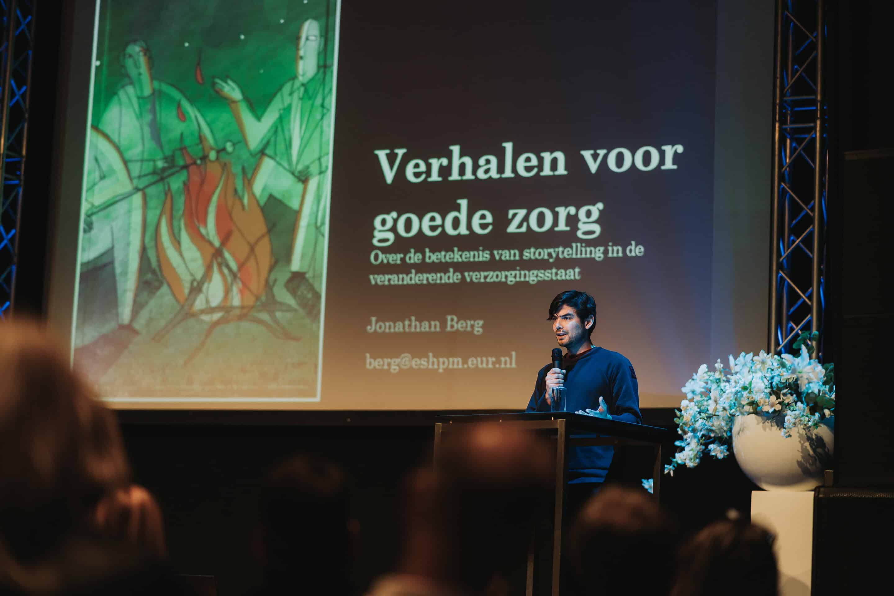 Jonathan Berg presenteerde zijn onderzoek naar ondersteuning van mensen in kwetsbare situaties, met bijzondere aandacht voor bestaanszekerheid, maatwerk en samenwerking in het sociaal domein.