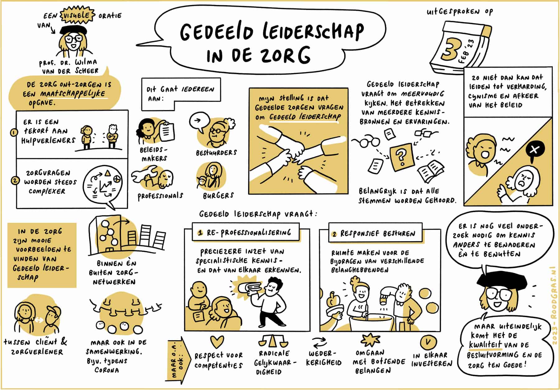 Oratie en symposium bij de aanvaarding van de bijzondere leerstoel Leiderschap en Besturing in de Zorg door Wilma van der Scheer, op 3 februari 2023.
